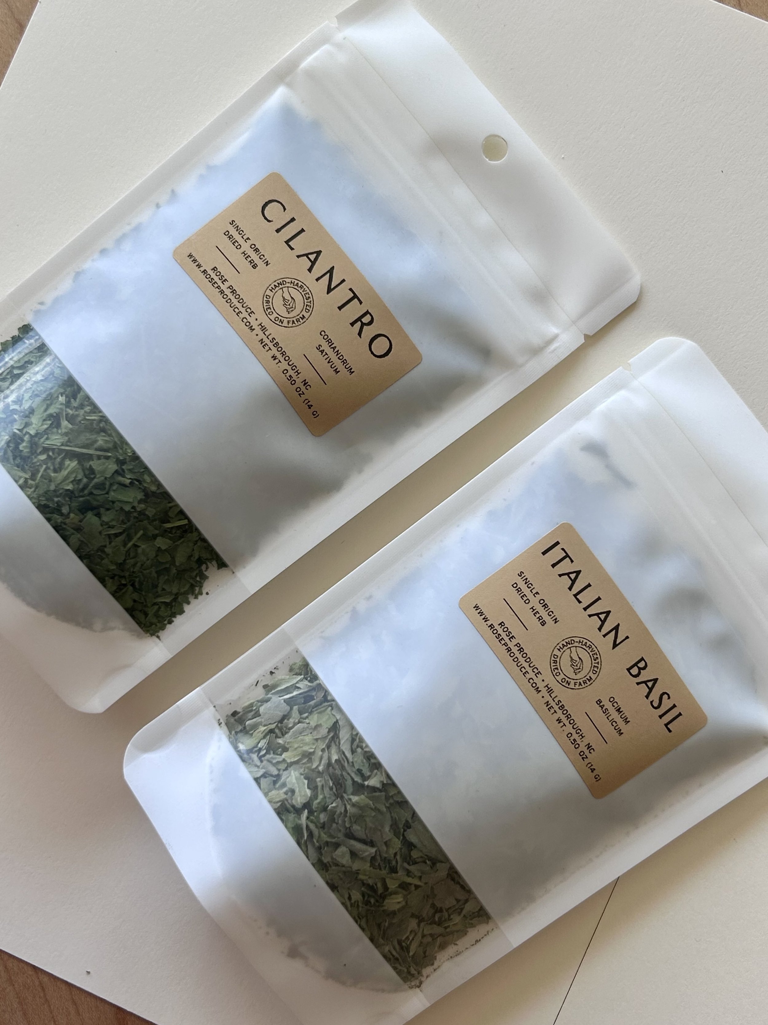 Your herbs will be individually packaged and labeled, in a large paper bag, for ease of pick-up and transportation home. We strive to use eco-friendly, compostable and recyclable packaging options wherever possible.
